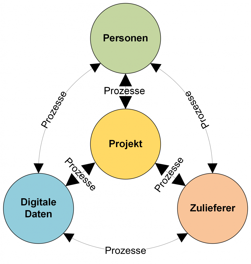 An jeder BIM-Phase des Bauprojektes sind Unternehmen und deren Personen beteiligt. In jeder BIM-Phase arbeiten Teams in unterschiedlichen oder gleichen Besetzungen in Abhängigkeit der Größe und der Art des Projektes.